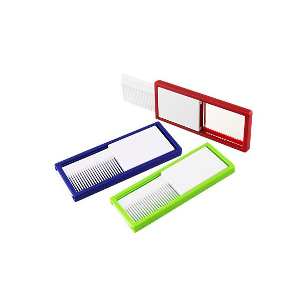 Peine o peineta con sistema retráctil y espejo incorporado.