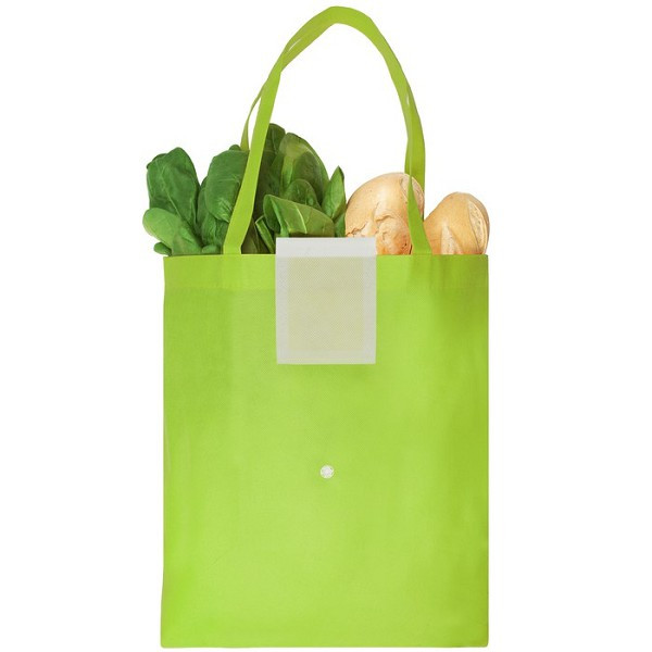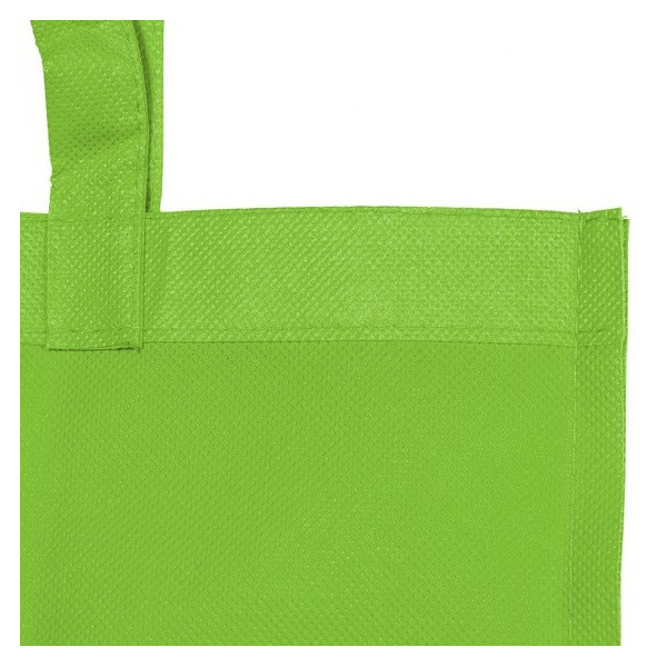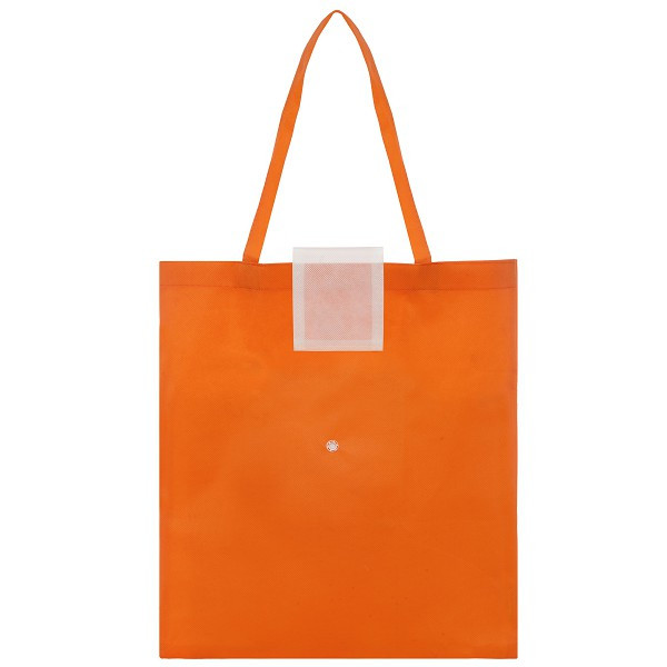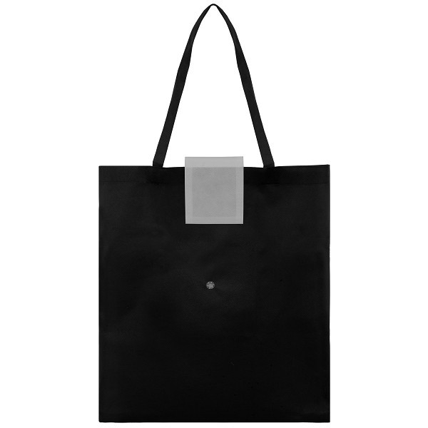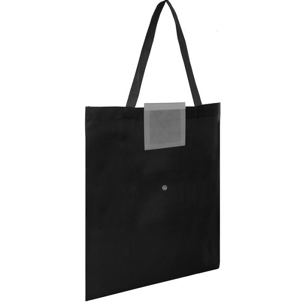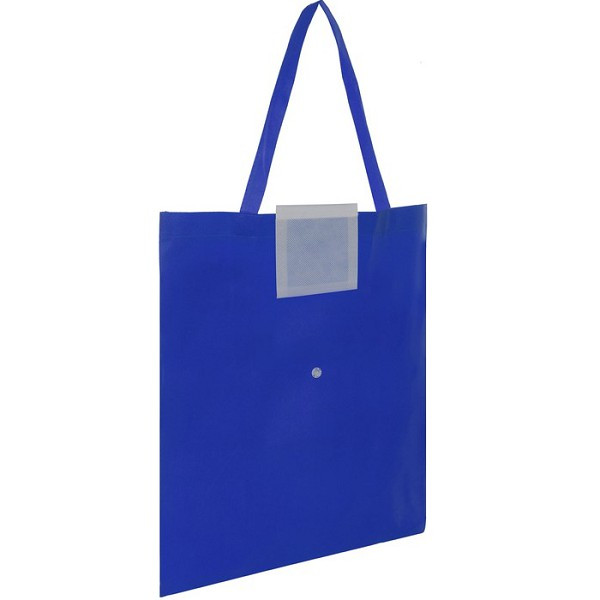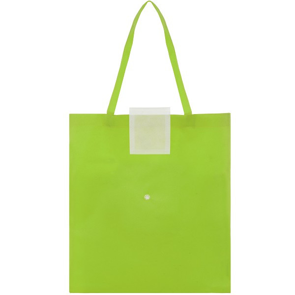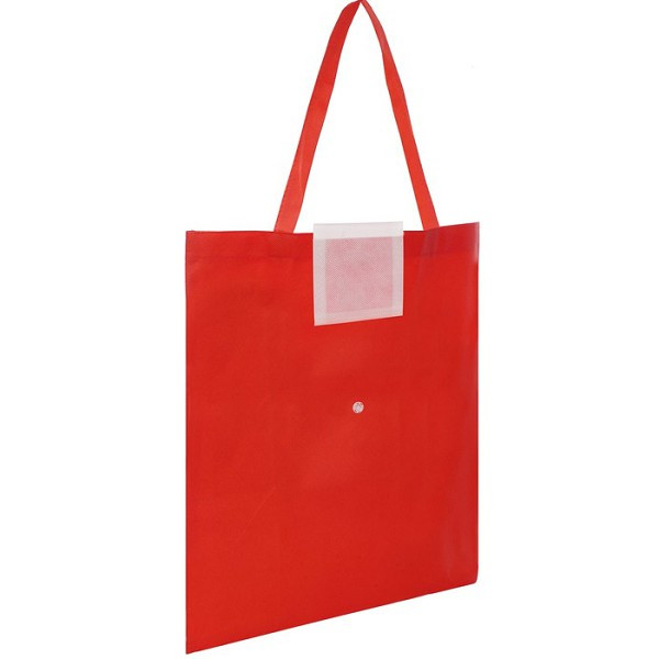 TNT (non-wovwn o Tela no Tejida). Bolsa ecológica, pose una solapa color blanco y botón, lo cual permite que la bolsa se pueda plegar.