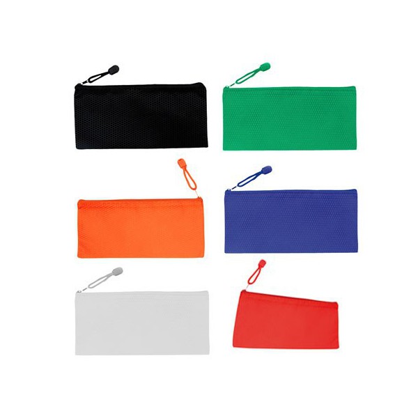 Estuche en tela TNT, de tamaño 24 x 11 cm.