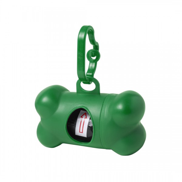Dispensador de bolsas para mascotas con resistente cuerpo en vivos colores y diseño de hueso.