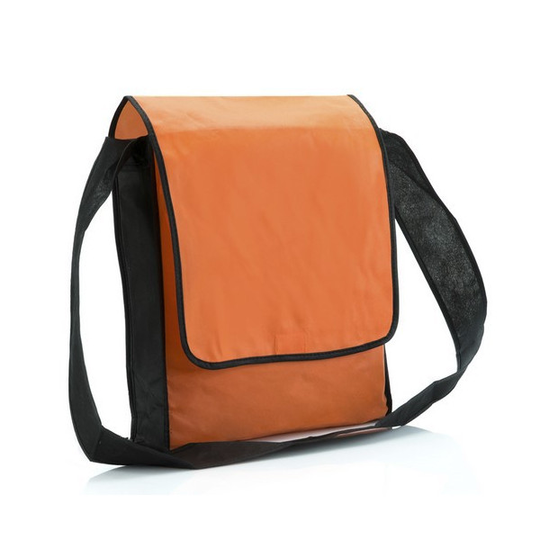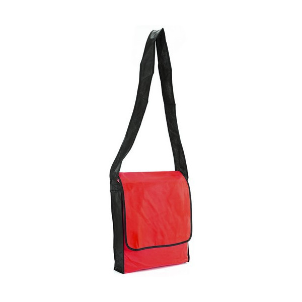 Bandolera de gran tamaño en non-woven, de diseño bicolor en variados colores y cierre de solapa de velcro. Con cómoda cinta para hombro.