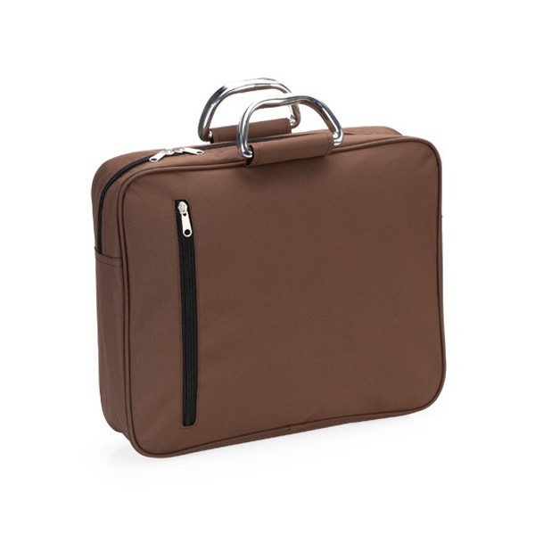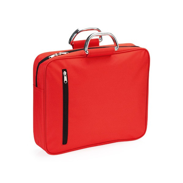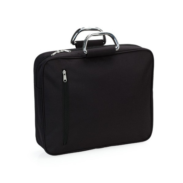 Elegante portadocumentos de cierre de cremallera con original bolsillo frontal en vertical, en suave acabado de microfibra en variados colores. Con asas de transporte metálicas reforzadas.