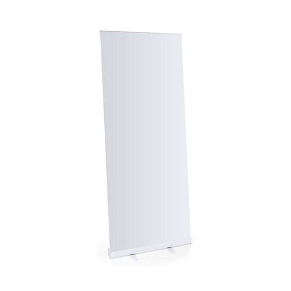 Panel de impresión roll up de 85x200cm en resistente polipropileno de alta densidad especialmente diseñado para marcaje a todo color. Con soportes de aluminio/PVC y gancho de sujeción. Presentación enrollado en funda de tela.