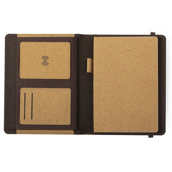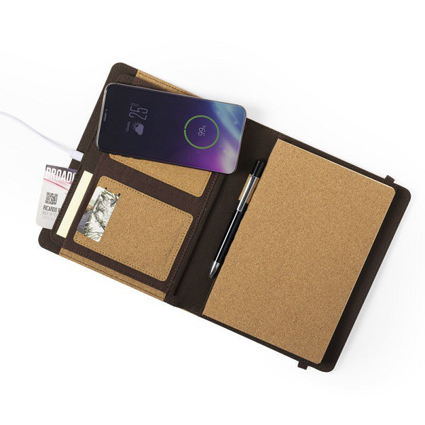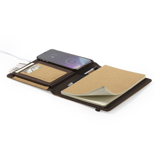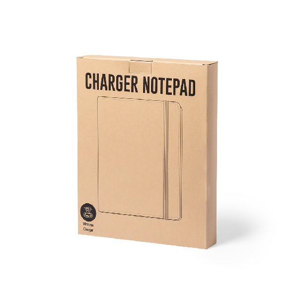 Bloc de notas de línea ECO natural con cargador inalámbrico integrado.