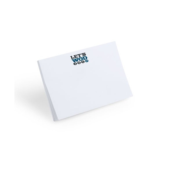 Block adhesivo de 50 hojas lisas especialmente diseñado para personalización en hojas. Pedidos a partir de 500 unidades.
