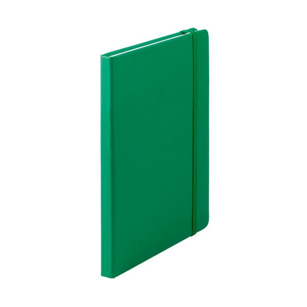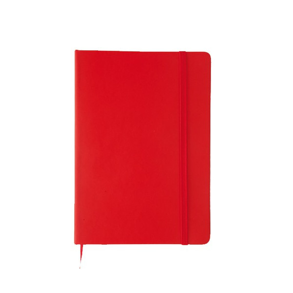 Bloc de notas con tapas de suave tacto, acabado en polipiel y en desenfadados colores. De 100 hojas lisas, con elástico de sujeción y marcapáginas de tela a juego.