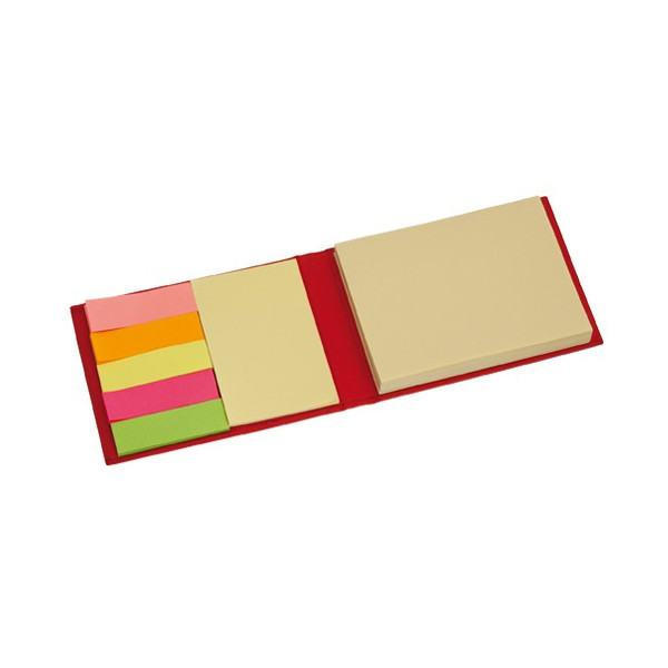 Bloc de notas adhesivas con tapas de suave tacto acabadas en resistente cartón reciclado rígido en variados colores y elástico de sujeción a juego. Con 75 notas adhesivas grandes, 25 medianas y 125 mini notas adhesivas.