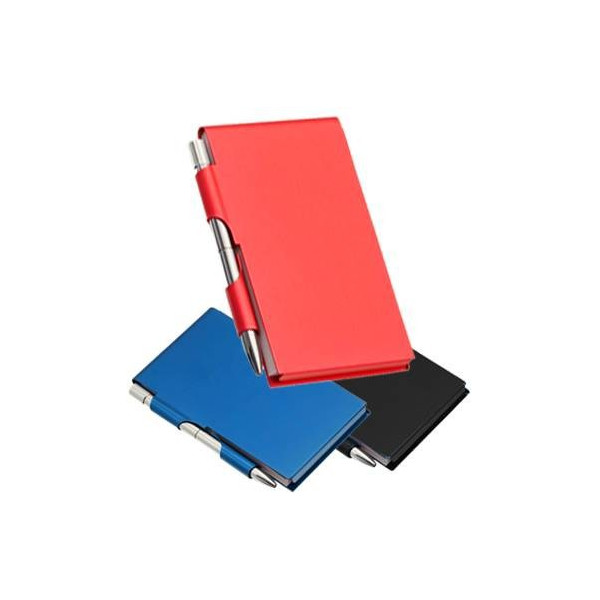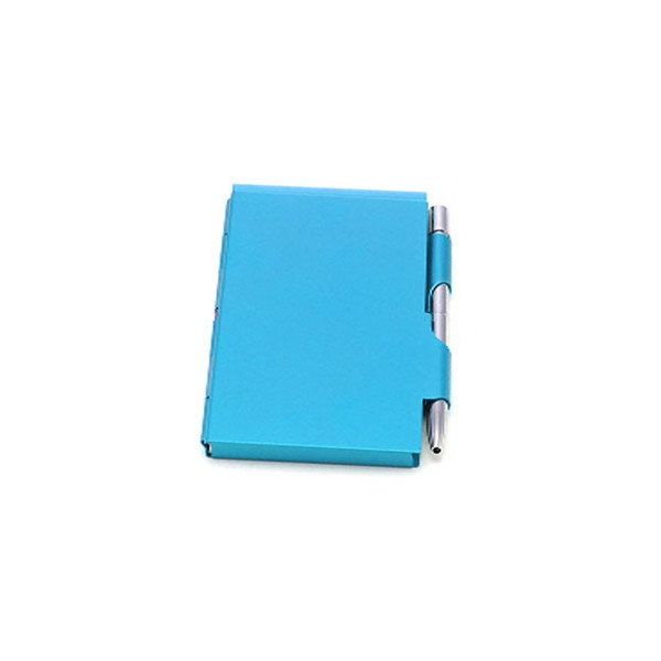 Block de notas con tapas en aluminio y lápiz integrado en tapa y contratapa.