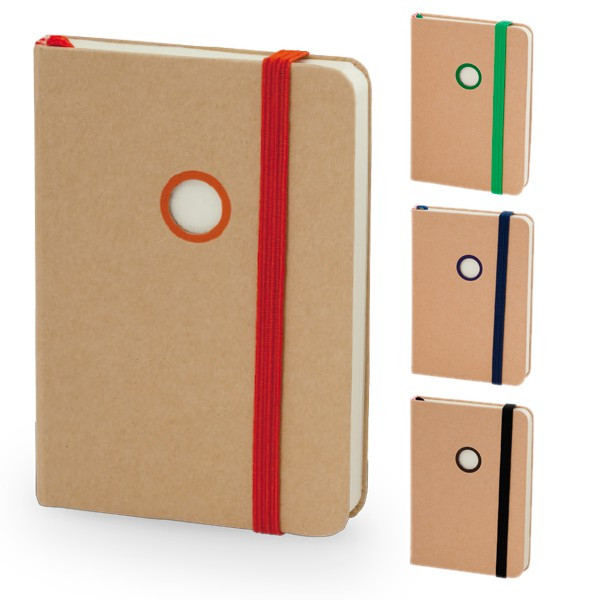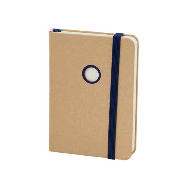 Block de notas con tapas en cartón reciclado, con 100 hojas lisas, elástico y marcapáginas.