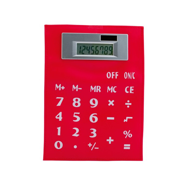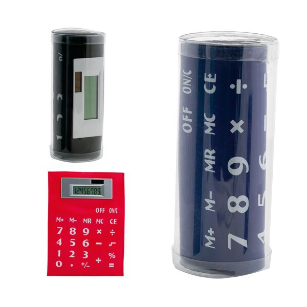 Original calculadora flexible dual de 8 dígitos. Con cuerpo de PVC en vivos colores. Pilas de botón incluidas con film protector y presentada en original estuche transparente.