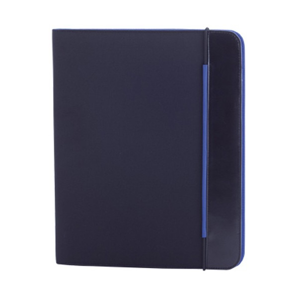 Carpeta de diseño bicolor en vivos colores acabada en suave microfibra y con cierre elástico. Interior a juego con bloc extraíble de 20 hojas lisas, bolsillo de solapa, tarjeteros y soporte para bolígrafo.