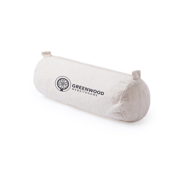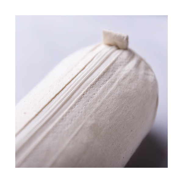 Estuche 100% algodón crudo de diseño cilíndrico.