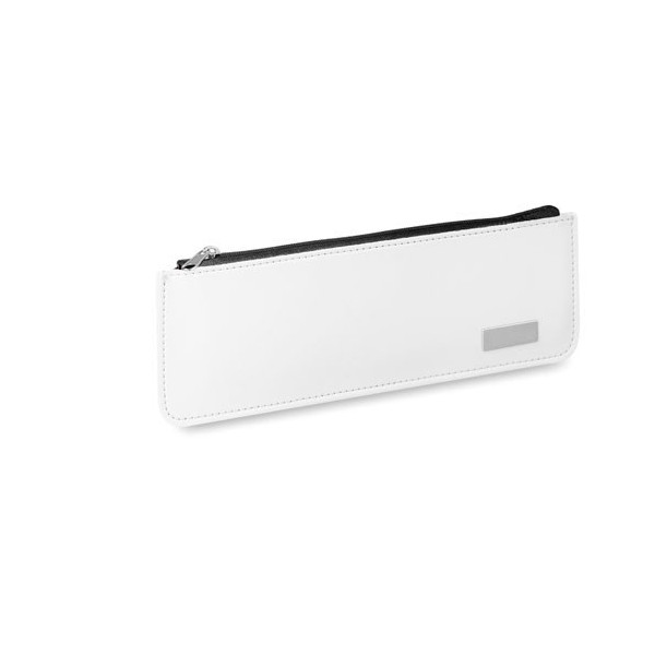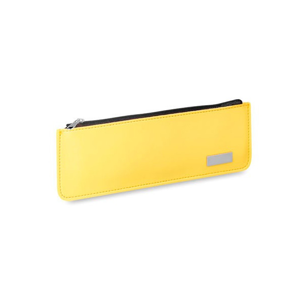 Estuche de cremallera con suave cuerpo acabado en polipiel de vivos colores y costuras de refuerzo. Con chapa metálica frontal especialmente diseñada para marcaje en láser.