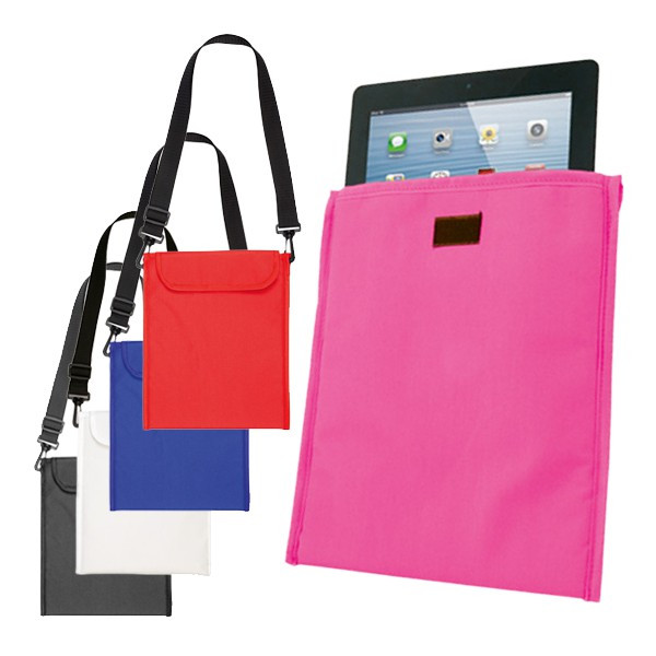Original funda bandolera en resistente poliéster 600D acolchado para tablets de hasta 10 pulgadas. En vivos colores, con cómodo cierre de velcro y cinta bandolera ajustable con doble cierre de mosquetón.