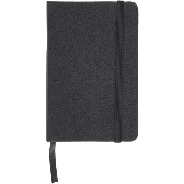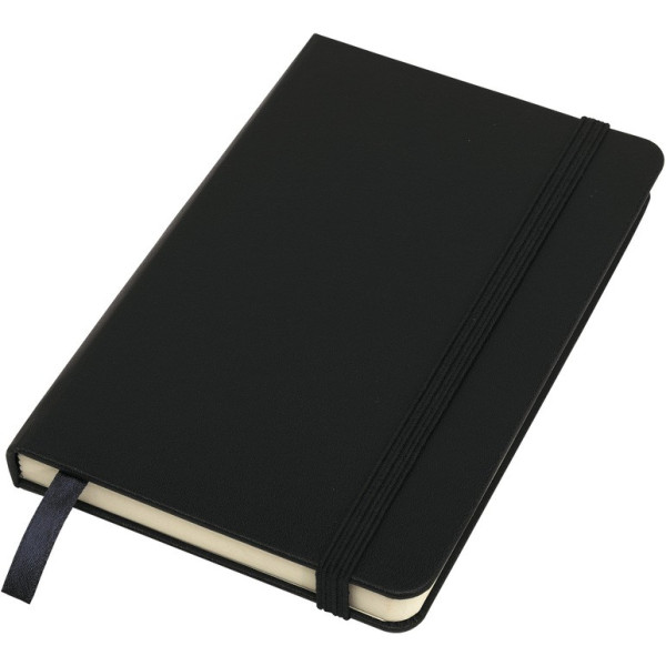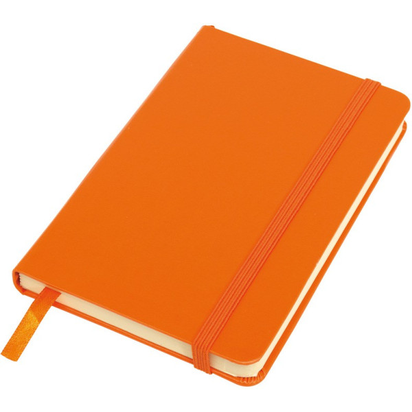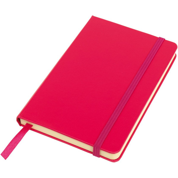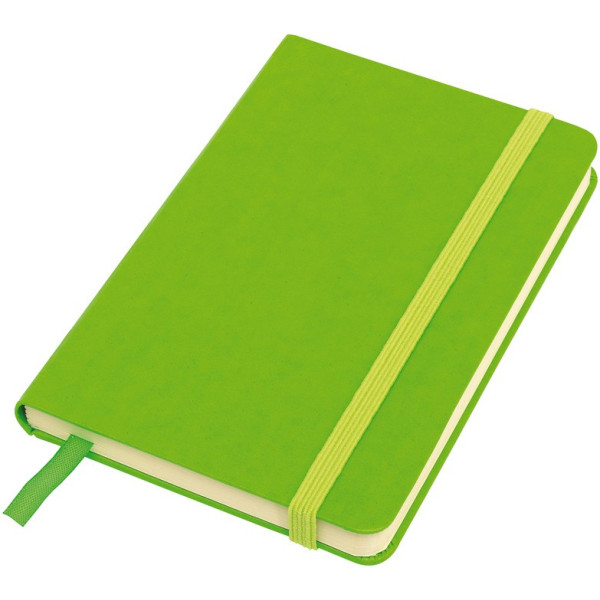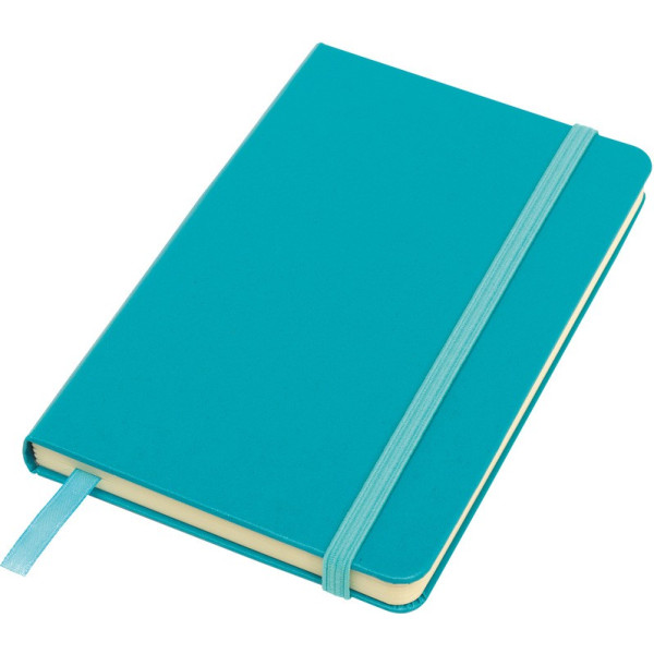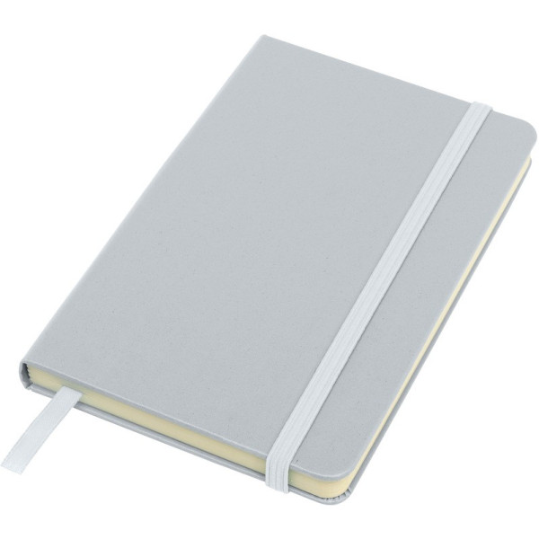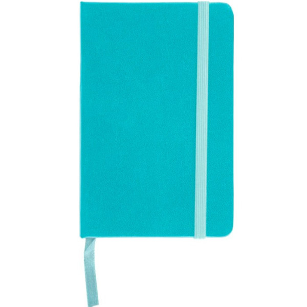 Cartón. 80 Páginas. Separador de hojas en tela. Cierre con banda elástica y hojas lineales.
