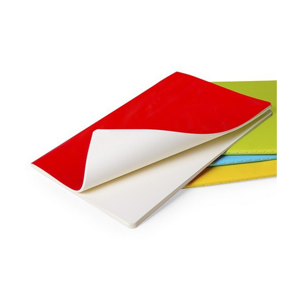 Libreta de diseño clásico con tapas de cartón en llamativos colores y de suave acabado. Con costuras a juego en lomo y 40 hojas lisas.