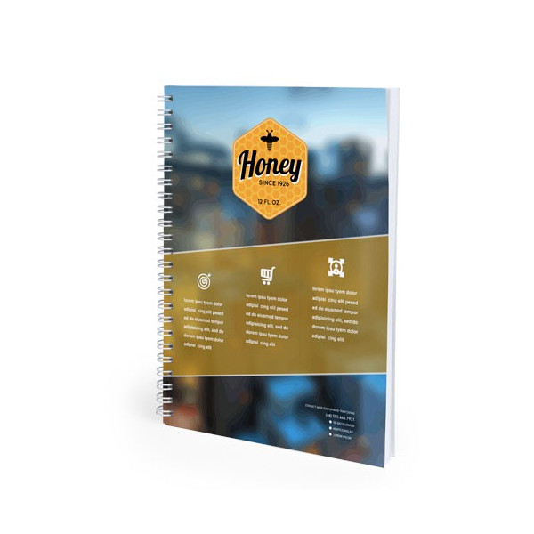 Libreta con espiral blanco con tapas de cartón rígidas y brillantes.