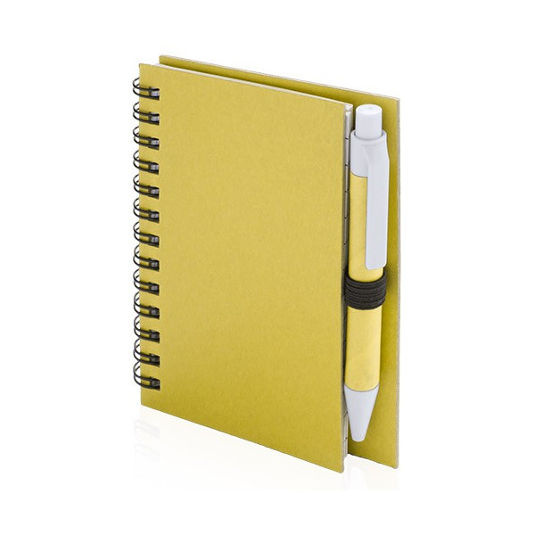 Libreta con espiral y tapas en cartón reciclado y lápiz a juego. Con 50 hojas lineadas.