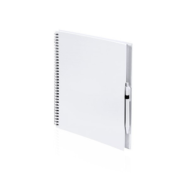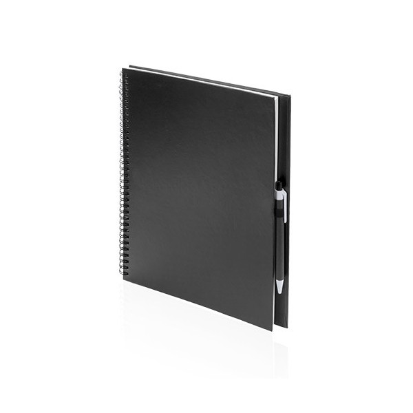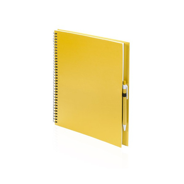 Libreta con espiral y tapas en cartón reciclado y lápiz a juego. Con 80 hojas lisas.