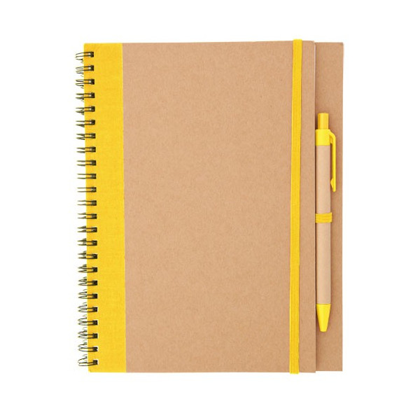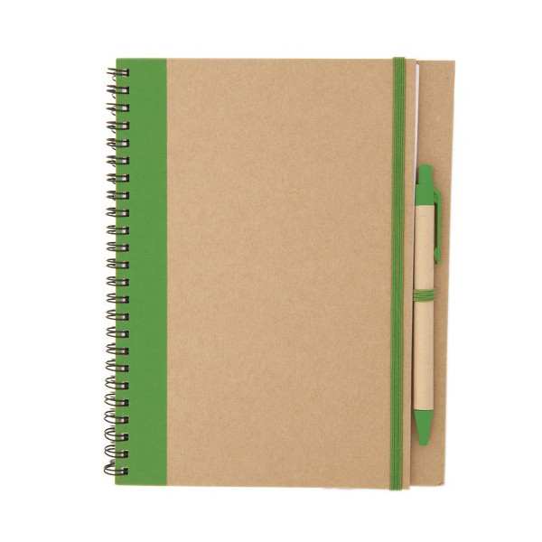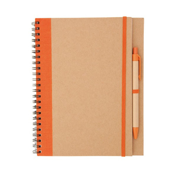 Libreta con espiral y tapas de cartón reciclado bicolor.