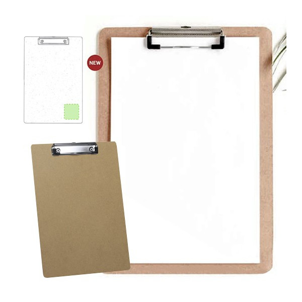 Clásico organizador Tabla en material MDF tamaño A4. Con resistente clip para documentación, con recubrimiento en las esquinas para no dañar los documentos.