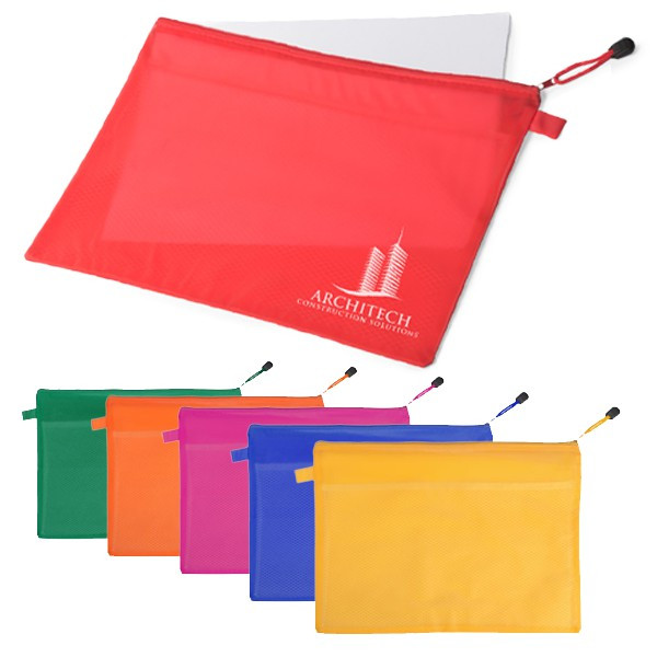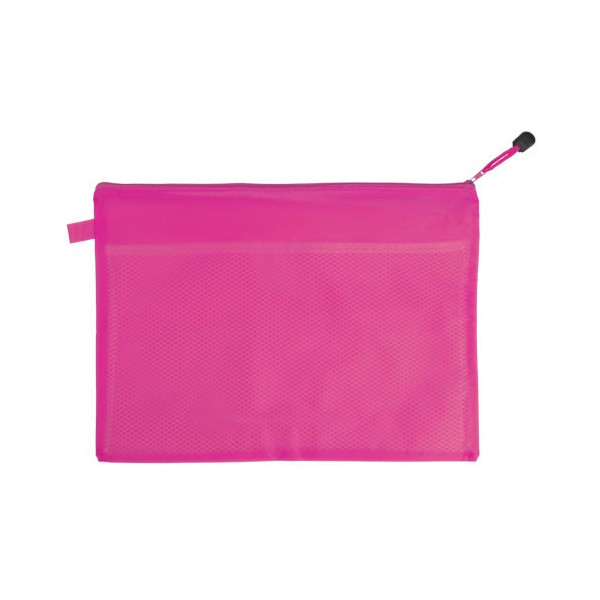 Original portadocumentos de cierre hermético con cuerpo acabado en elegante PVC de vivos colores. Con cinta reforzada en tirador a juego para cómoda apertura.