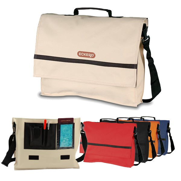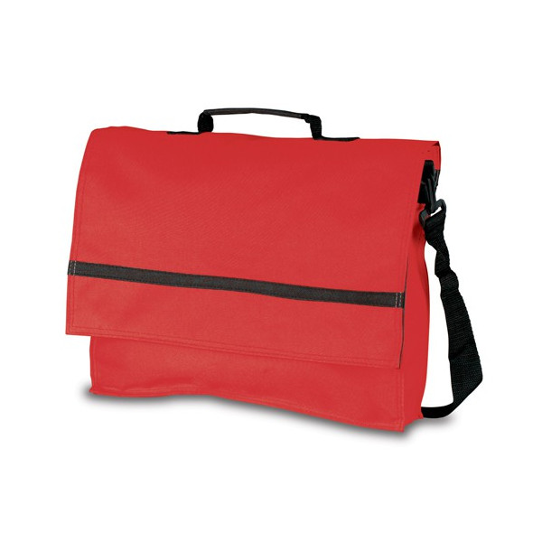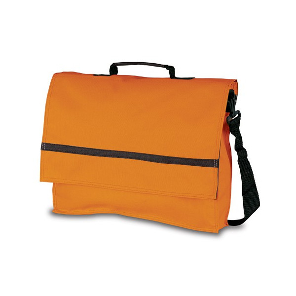 Portadocumentos de cierre de cremallera con original bolsillo frontal en vertical, en suave acabado de poliéster 600D de vivos colores y con asas de transporte reforzadas.