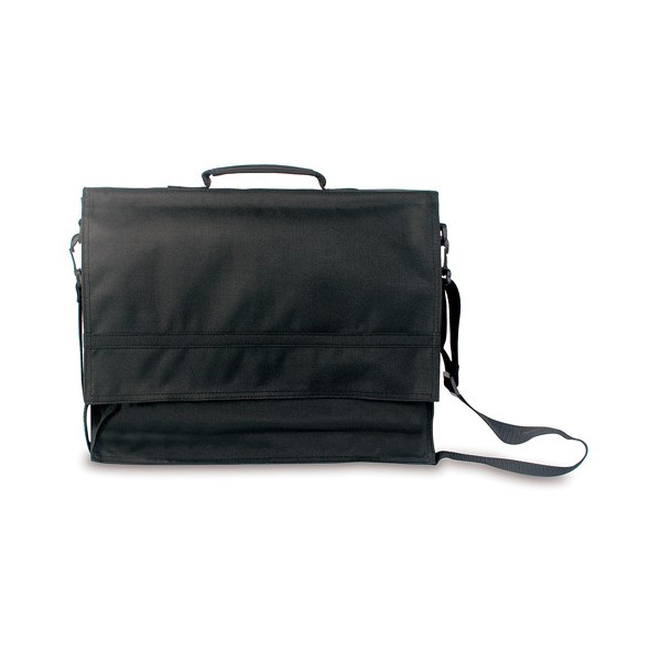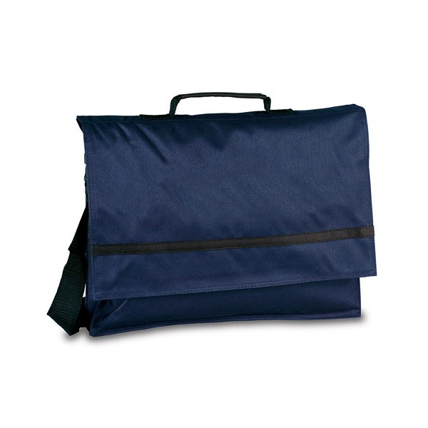 Portadocumentos de cierre y bolsillo frontal en vertical, asas y de material poliéster.