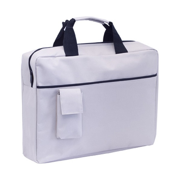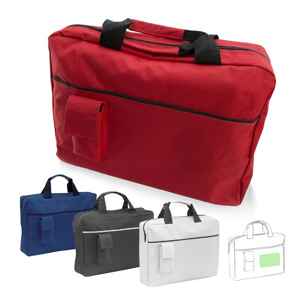 Portadocumentos de cierre, en material poliéster, con asas de transporte.