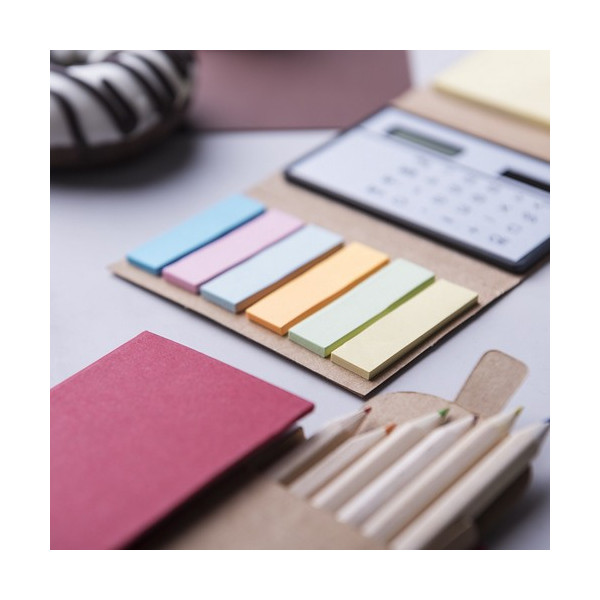 Set de block de notas con caja de lápices.