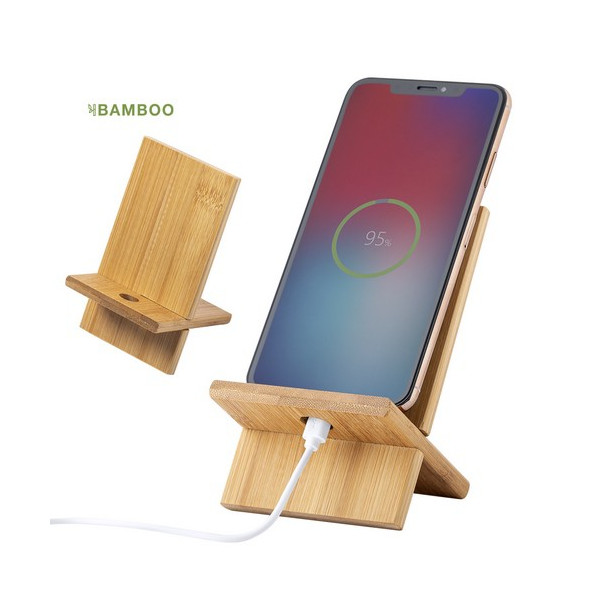 Soporte de línea nature fabricado en bambú procedente de cortes naturales. Muy fácil de montar, con ranura para cargar el dispositivo mientras se se encuentra situado en la base.