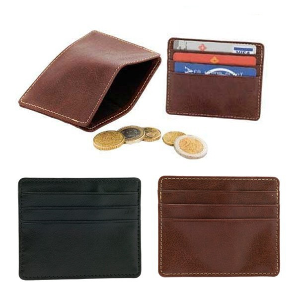 Monedero tarjetero con cuerpo en suave acabado de elegante polipiel brillante. Con monedero en parte central de apertura a presión lateral y 3 compartimentos para tarjetas.