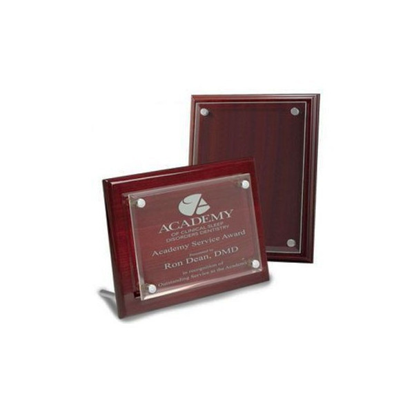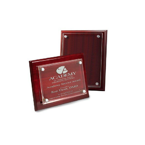 Galvano MADERA Y ACRILICO en formato rectangular. Permite logo, texto y/o fotografía.
