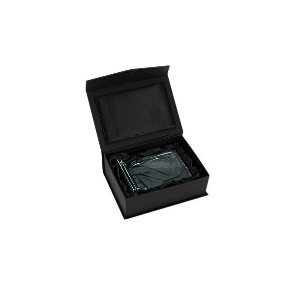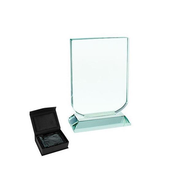 Este reconocimiento vertical de cristal con base rectangular permite grabado láser de logo, texto y/o fotografía.