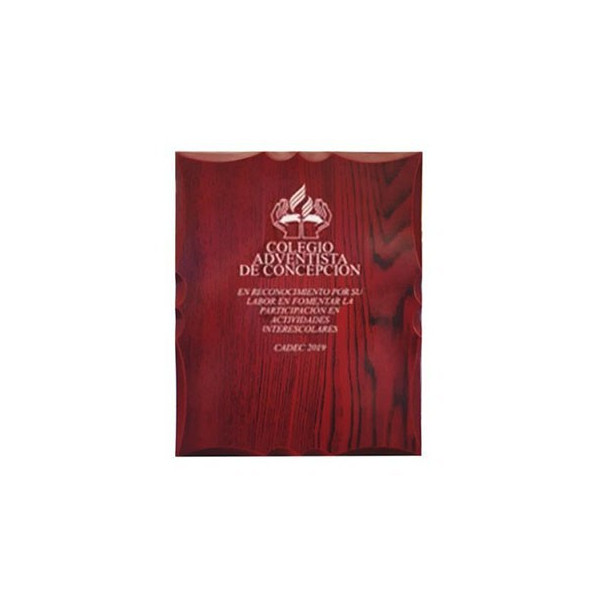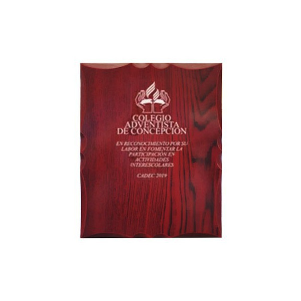 Este reconocimiento en madera en formato rectangular para colgar.