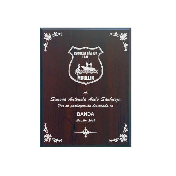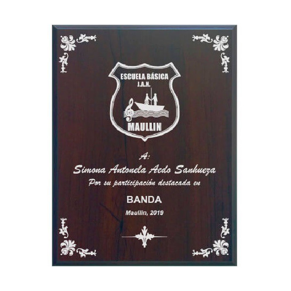 MDF Enchape de Madera NOGAL en formato rectangular que permite logo, texto y/o fotografía.