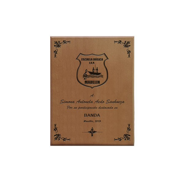Galvano o trofeo de MADERA con forma RECTANGULAR.