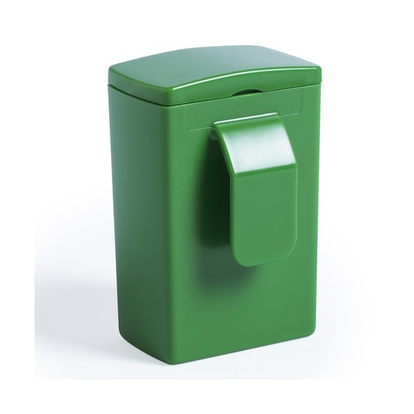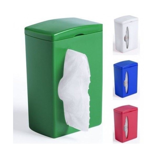 Dispensador de bolsas con resistente cuerpo en vivos colores y clip para ajuste.