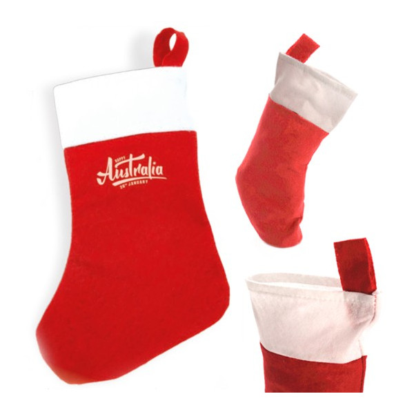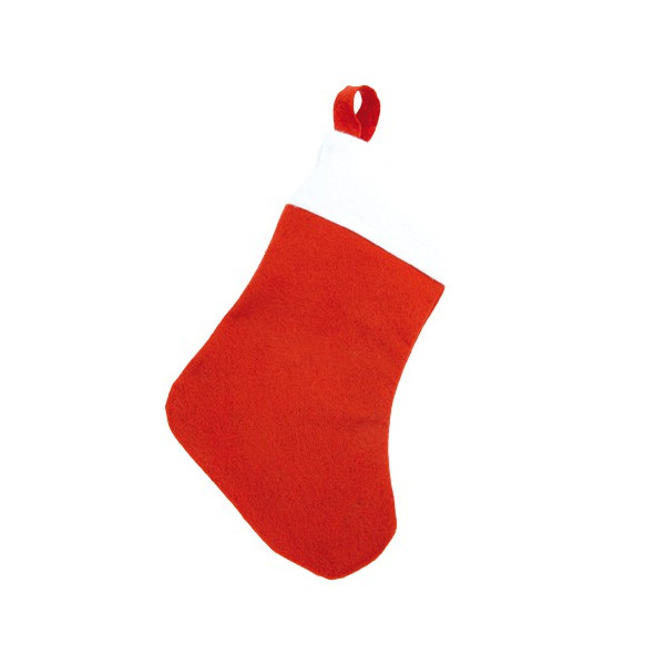 Calcetín navideño con cinta para colgar.