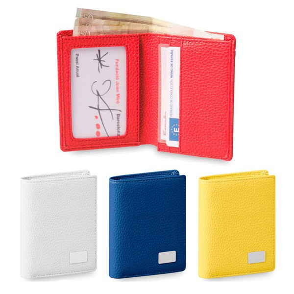 Cartera con cuerpo en suave acabado de elegante polipiel brillante en variada gama de colores. Interior con billetero, compartimento transparente para documentación y 4 compartimentos para tarjetas. Con chapa metálica exterior para marcaje en láser.