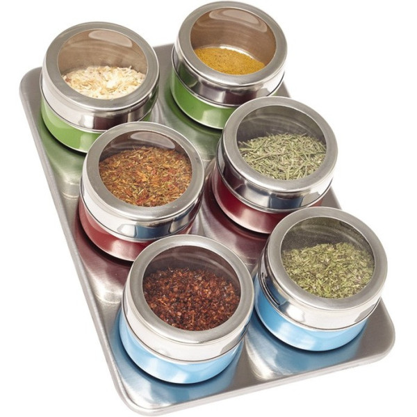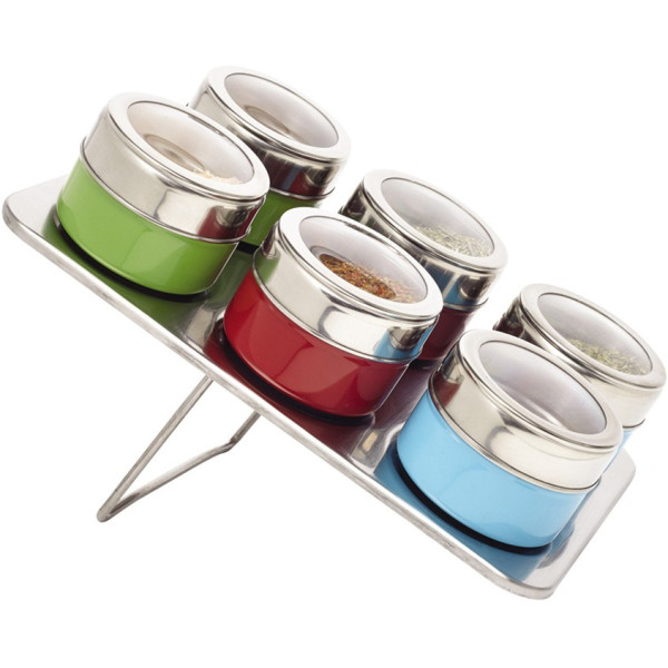 Set de 6 Especieros imantados de color con base metálica contiene un píe que permite elevarla.