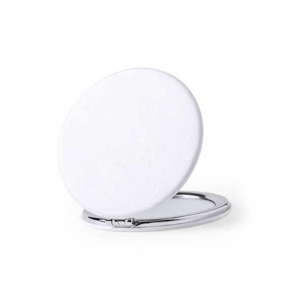 Espejo plegable de eco-cuero blanca con dos espejos.