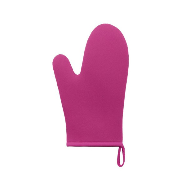 Manopla de cocina en alta calidad en combinación de materiales neopreno y poliéster de variada gama en vivos colores. Con una cara lisa especialmente diseñada para impresión y cinta para colgar.
