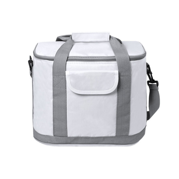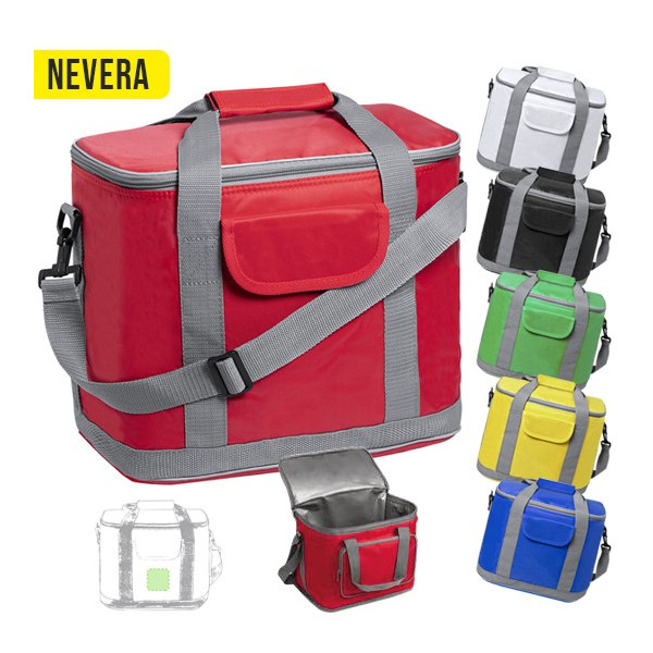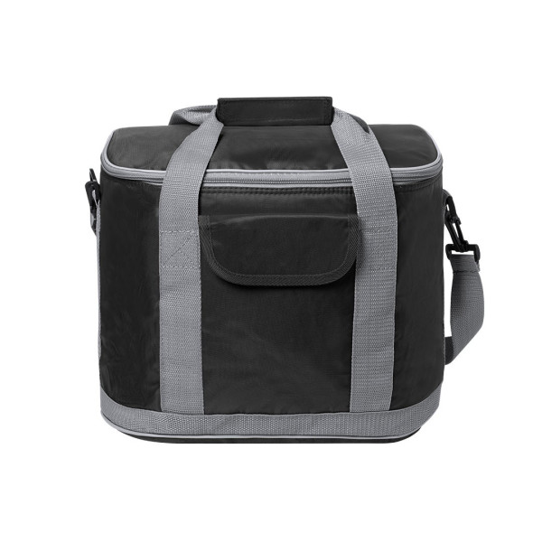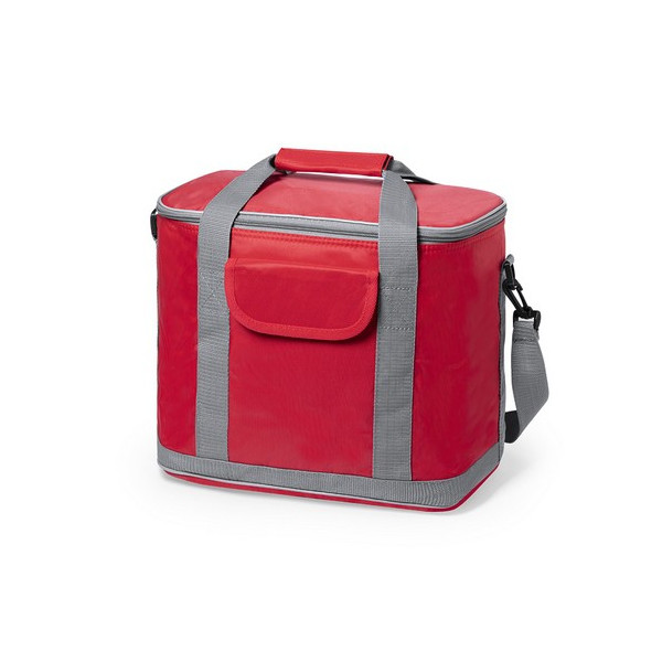 Cooler todoterreno en poliéster con cierre y bolsillo frontal.