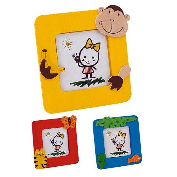 Portafotos en madera natural con divertidos diseños de animales.