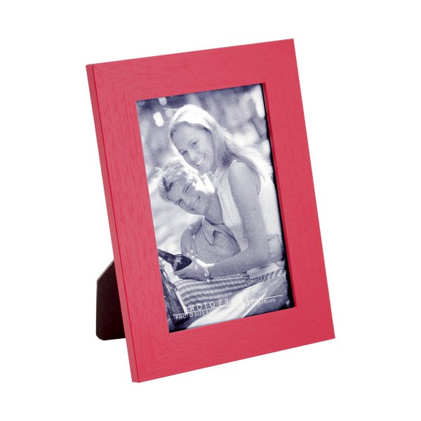Portafotos en variada gama de colores con marco de madera. Con cristal protector y soporte antideslizante para posicionado horizontal y vertical. Para fotos de hasta 10x15cm y presentado en caja individual.