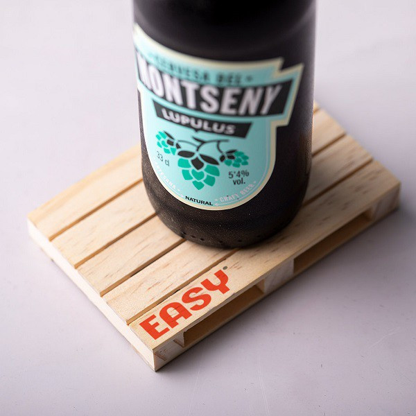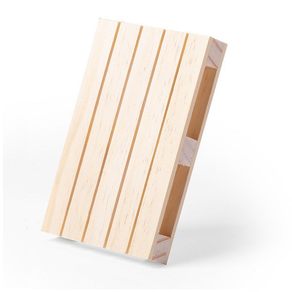 Original posavasos de línea nature con forma de palet y en madera natural.