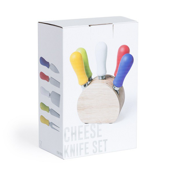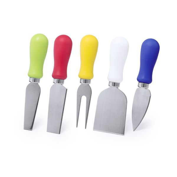 Set para quesos de 6 piezas. Con cuchilla en acero inox y mango ergonómico en variada gama de vivos colores.