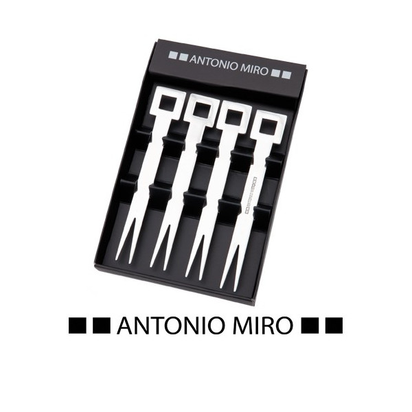 Set de trinchadores de acero inox de Antonio Miró. De elegante diseño inspirado en los cuadros de la marca y presentado en estuche individual con logotipo de la marca.