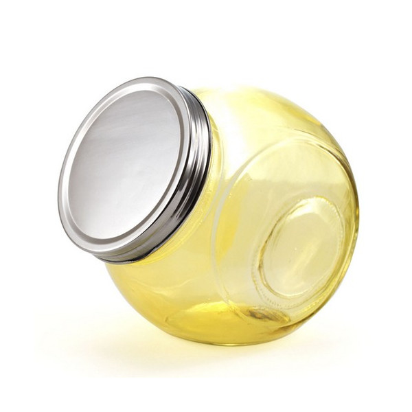 Tarro multiusos de cristal de 650ml de capacidad en vivos colores transparentes. Con tapa de rosca y presentado en caja individual.